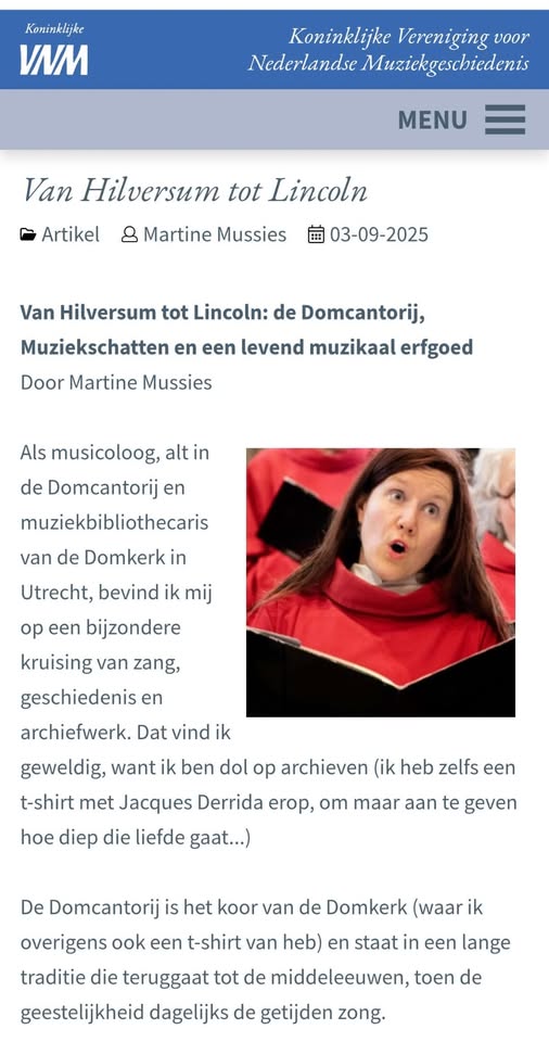 As a musicologist, an alto in the Domcantorij, and music librarian of the Dom Church in Utrecht, I find myself at a rather special crossroads of singing, history, and archival work. I absolutely love that position, as I have a deep affection for archives (I even own a T-shirt featuring Jacques Derrida, which says quite a lot about the extent of that passion…).